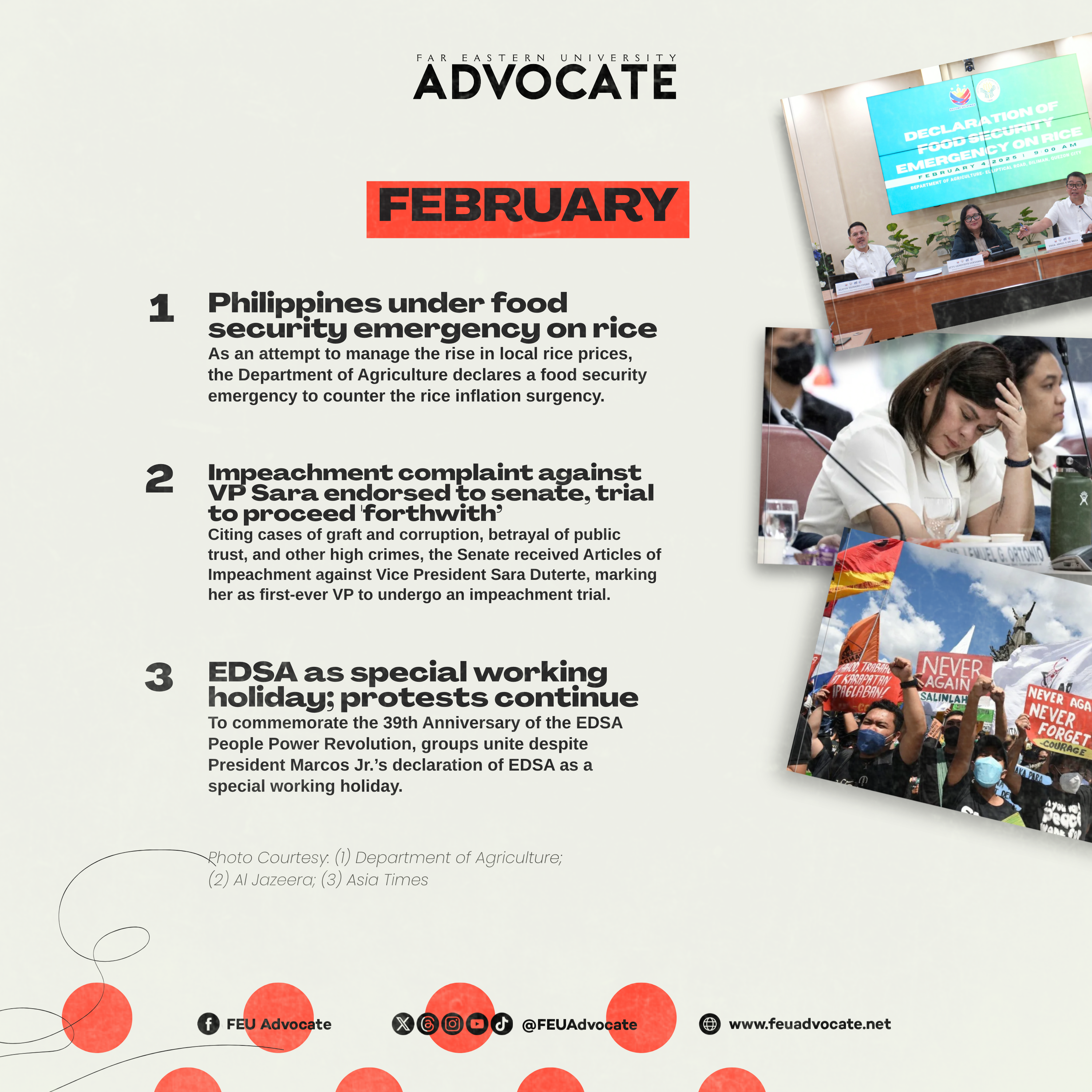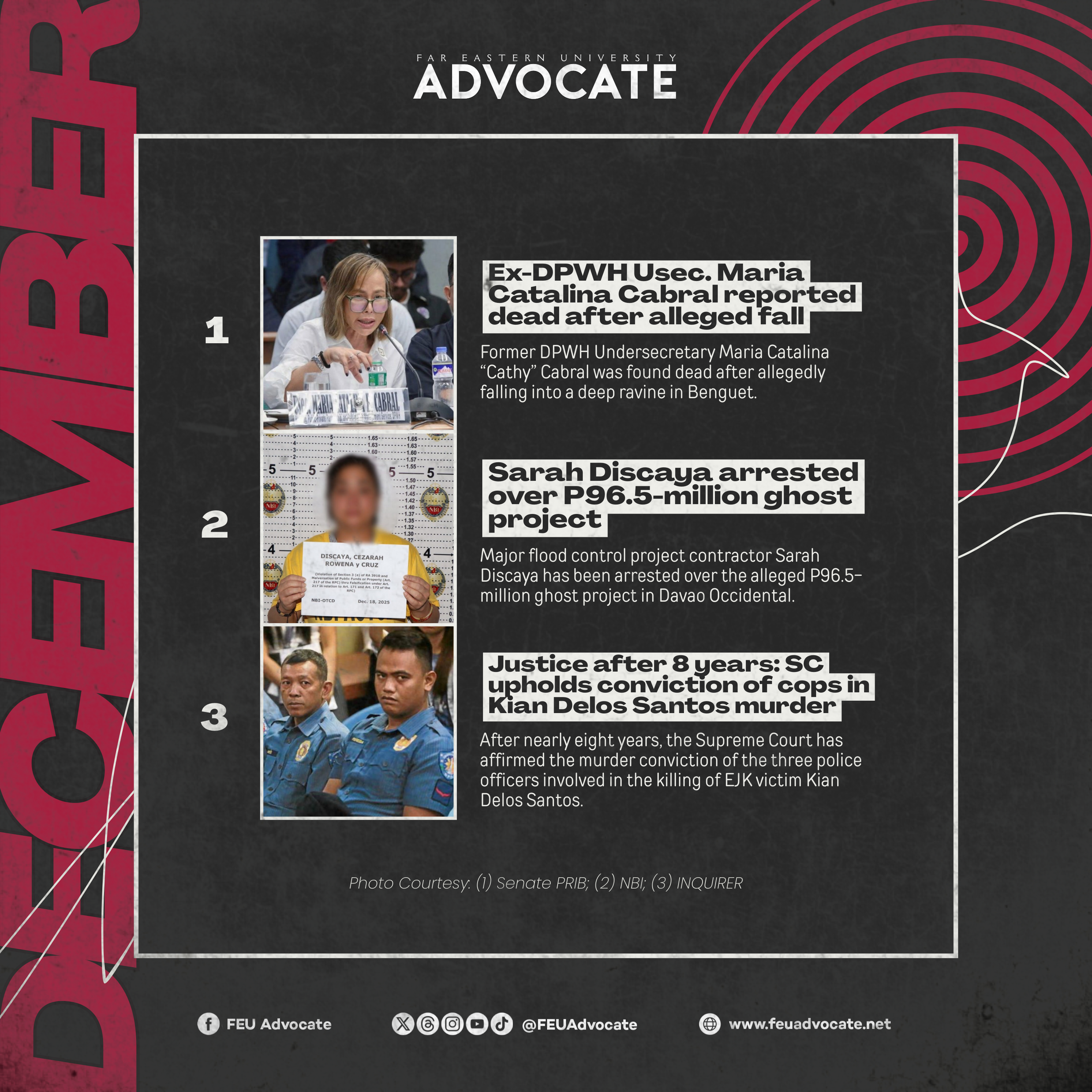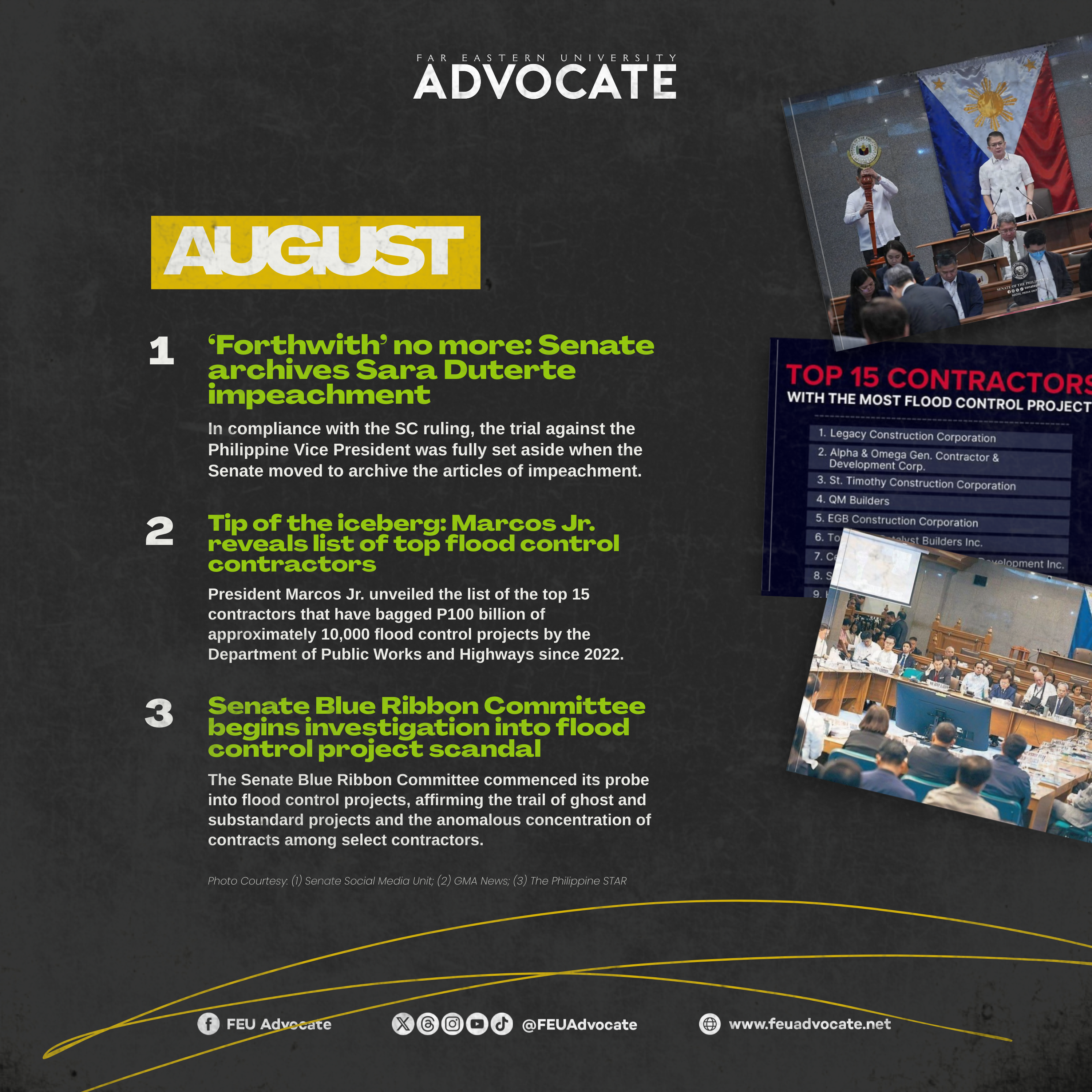 From the arrest of the former president and impeachment trials against the vice president to severe flooding and corruption scandals, the Philippines has faced various issues in recent months, marking 2025 as the year the country’s ingrained systemic injustice became palpable to Filipinos to the point of nationwide dissent. As public outcry continues to linger and echo throughout the streets, it is important to keep our hunger for justice and accountability alive by recalling what transpired over the eventful 12 months that have passed.