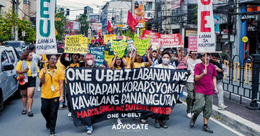 Far Eastern University (FEU), together with various universities from the National Capital Region, took part in the ‘National Youth Day of Action against Corruption’ to condemn the nationwide corruption within the government at Mendiola Street earlier today, October 17.