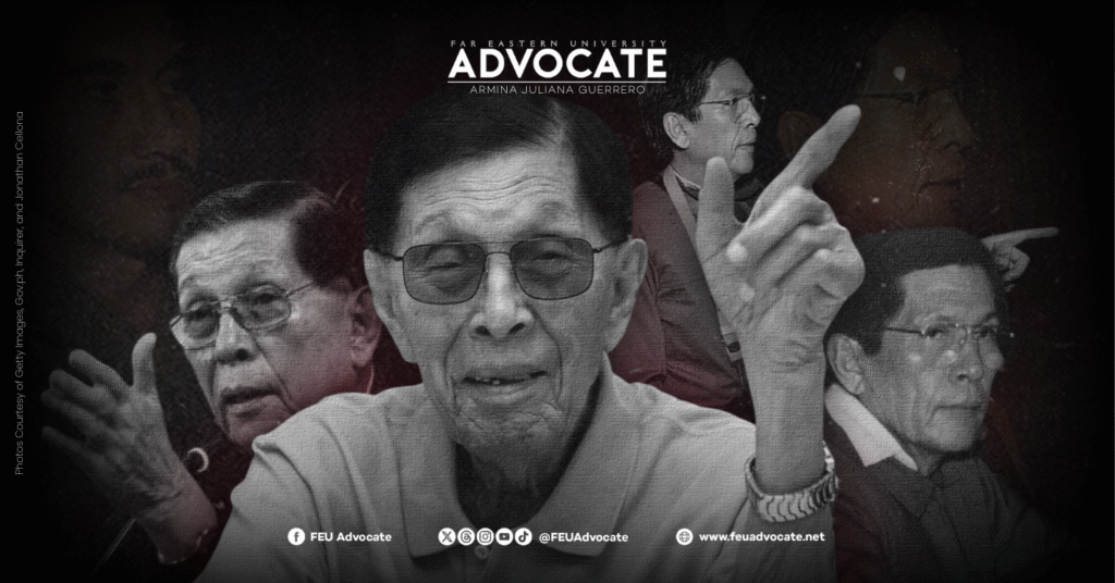 From living through years-long dictatorship, changes in presidency, and various anomalies, to maintaining political relevance even after the generations he has lived, Enrile’s name still echoes both in controversies and grief—stuck in the chambers of the Martial Law legacy, political revisionism, and accountability, which he did not carry into the afterlife.