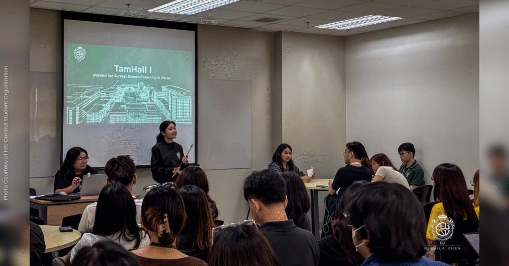 Far Eastern University Central Student Organization (FEUCSO) led an open discussion regarding the current learning modality in the University during ‘TamHall I Beyond the Survey: Blended Learning in Focus,’ which provided an open space for Tamaraws to share their grievances and collective thoughts, held in FEUture Center Rooms 612 and 613 last October 27.